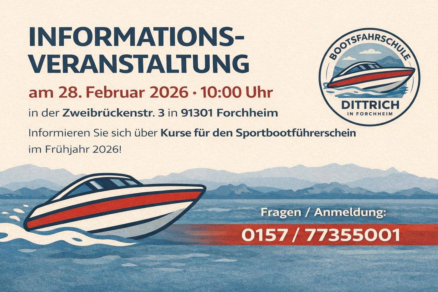 Die Bootsfahrschule Dittrich macht´s möglich und informiert am 28.02.2026 in Forchheim über den Sportbootführerschein.